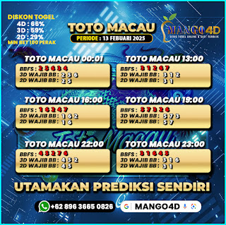 SYAIR ANGKA TOTO MACAU HARI INI KAMIS 13 FEBUARI 2025
